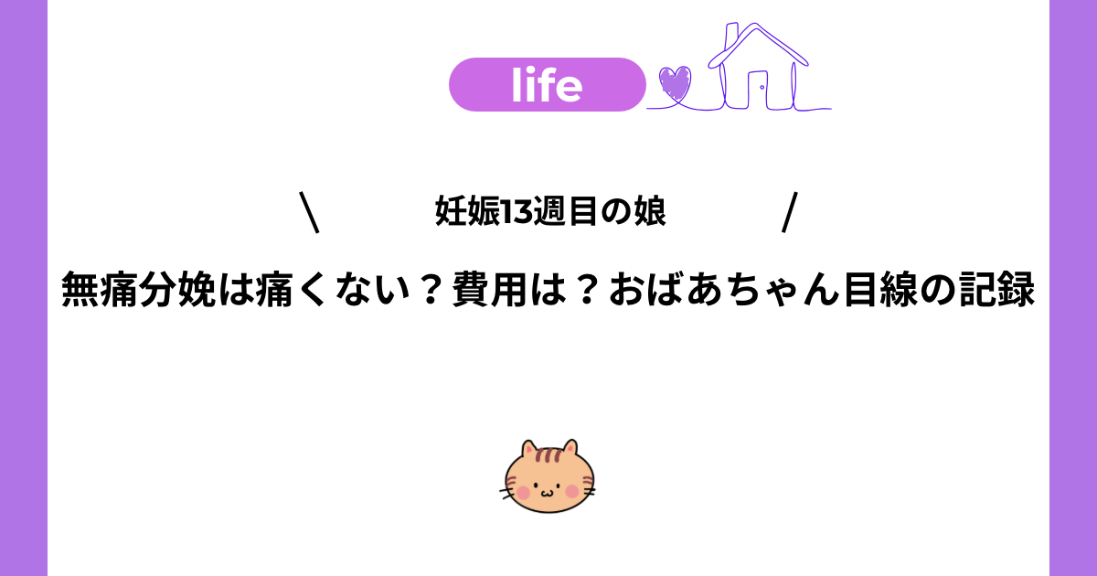 「無痛分娩」という名前から、てっきり全く痛みを感じないものだと思っていた私。娘ちゃんに聞いてみたら、そうではないらしく、私の勘違いだと判明しました。テヘッ。