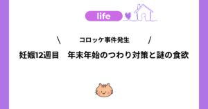 妊娠12週目の記録はこちら!年末年始のつわりとコロッケ事件もどうぞ😊