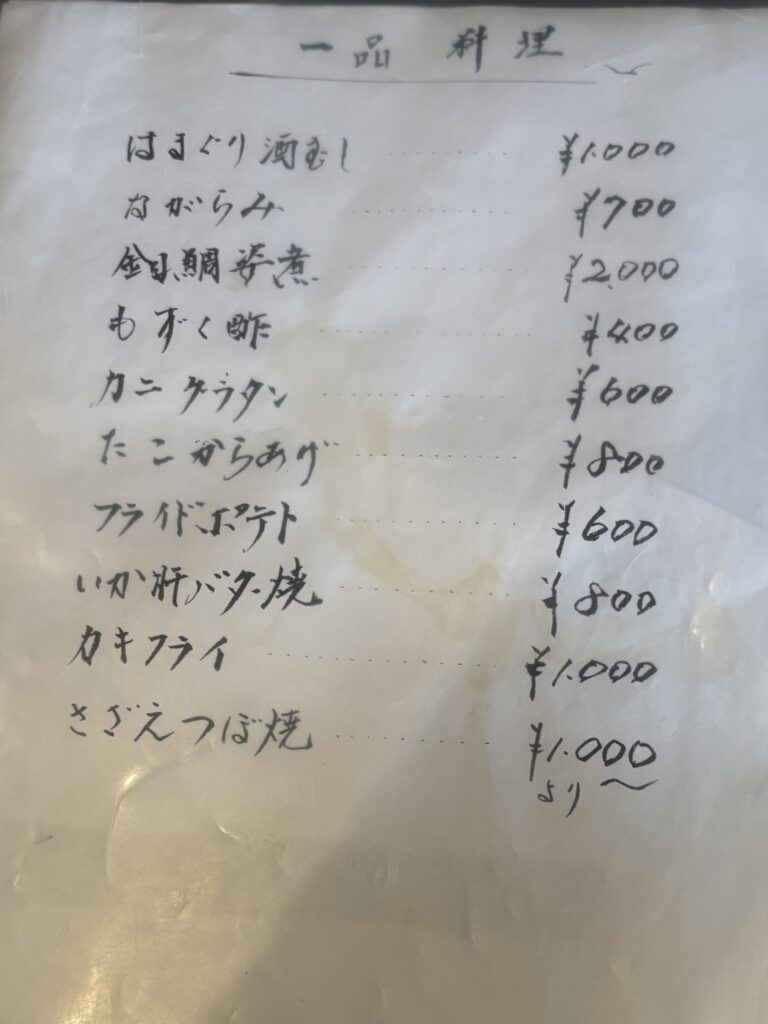 いすみ市商工会HPのよると、『あき』は実家が網元ということで、新鮮でお得な地魚料理が提供されるお店。メニューを見ると、メニュー数は決して多くはありませんが、その時々でおいしく提供できるものが用意されている印象。