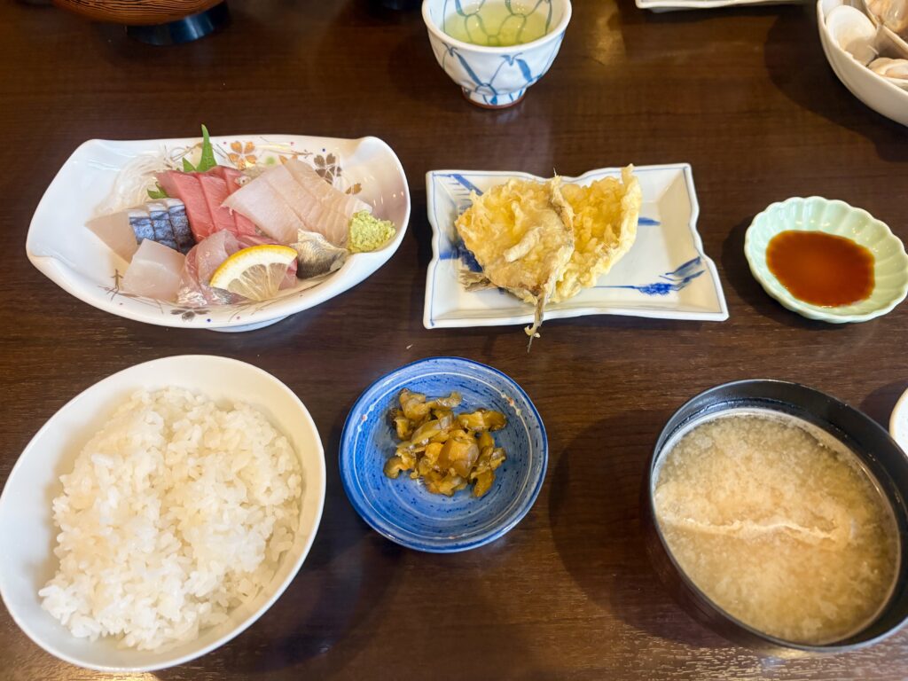 お刺身定食にはまぐりの酒蒸しがついてくる、見た目にも満足なはまぐり御膳。これで2,500円は驚きです。はまぐりは結構値段も高いイメージなので、地元ならではの価格なのでしょう。はまぐりは小ぶりですが、肉厚で噛むと口の中に旨みが広がります!