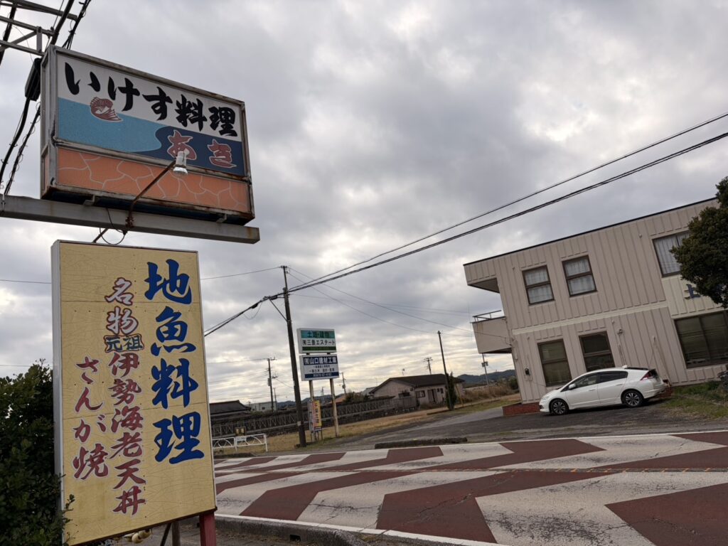 昨年(2025年)の12月最後の土日に1泊2日で勝浦に行ってきました。宿泊先は三日月シーパークホテル勝浦。温泉に入ってホテルのバイキングを食べてゆっくり滞在したかったので、チェックインの15時にはホテルに到着する予定。せっかく房総に来たなら勝浦に行く途中でどこかでおいしい地元の海鮮料理を食べたいと物色していたところ、いすみ市で見つけたのが『いけす料理 あき』。