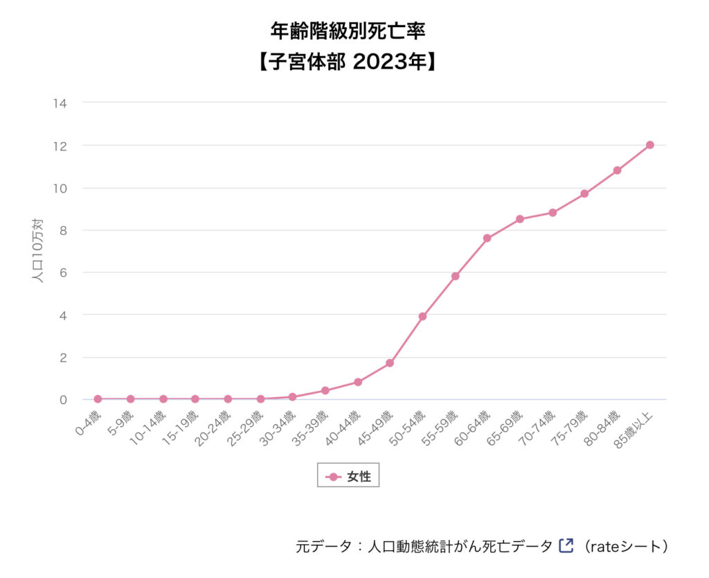 下のグラフを見ると、明らかに40代過ぎた頃から罹患率が上がっていますよね。死亡率も50歳超えるとぐっと上がっています。この原因が何なのか、医学的にどうなのか詳しいことは私にはわからないのですが、私のような年代は注意が必要なのは間違いないようです。