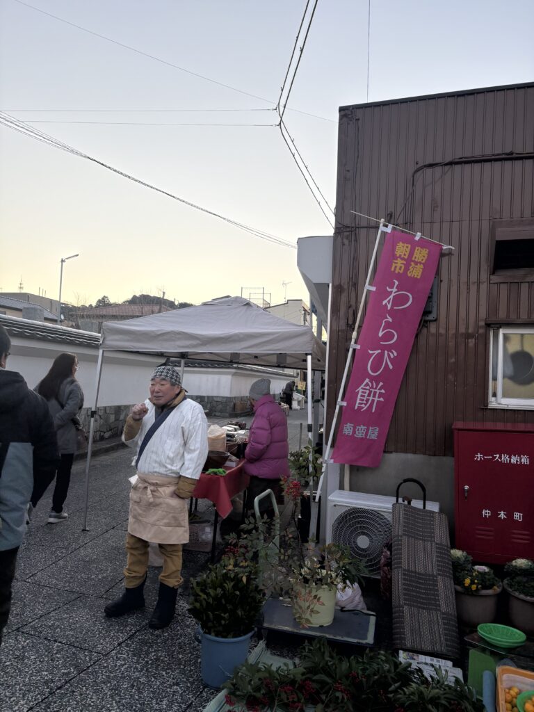 今回気になっていたわらび餅はいただくことができましたが、キサブローのメンチカツ見つけることができませんでした。朝市に行った時間が、少し時間が早かったのかもしれません。朝6時30分頃から開催されている朝市ですが、午前7時より前だとオープンしているお店はまだ少なめ。