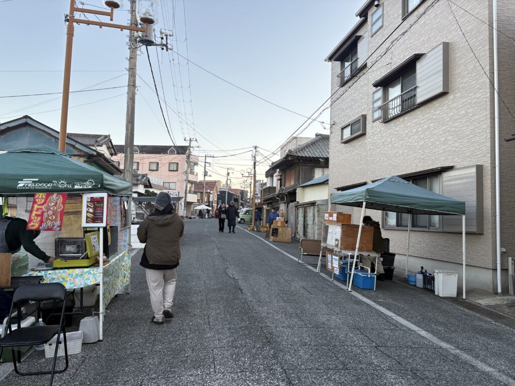 勝浦を訪れたのは12月の後半なので、朝市が開催されていたのは仲本町通り。宿泊した三日月シーパークホテル勝浦からは徒歩 7、8分のところにあります。6時45分頃に、いよいよ仲本町通りに到着!