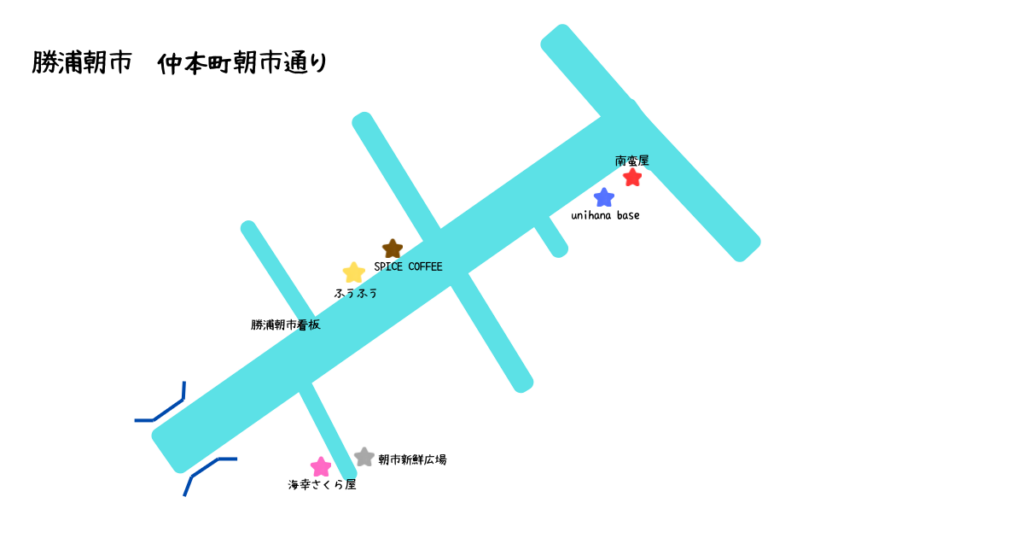 勝浦朝市はJR勝浦駅から徒歩10分のところで開催されています。電車でも車でもアクセスしやすいのが魅力。日によって開催場所が変わるのが特徴です。