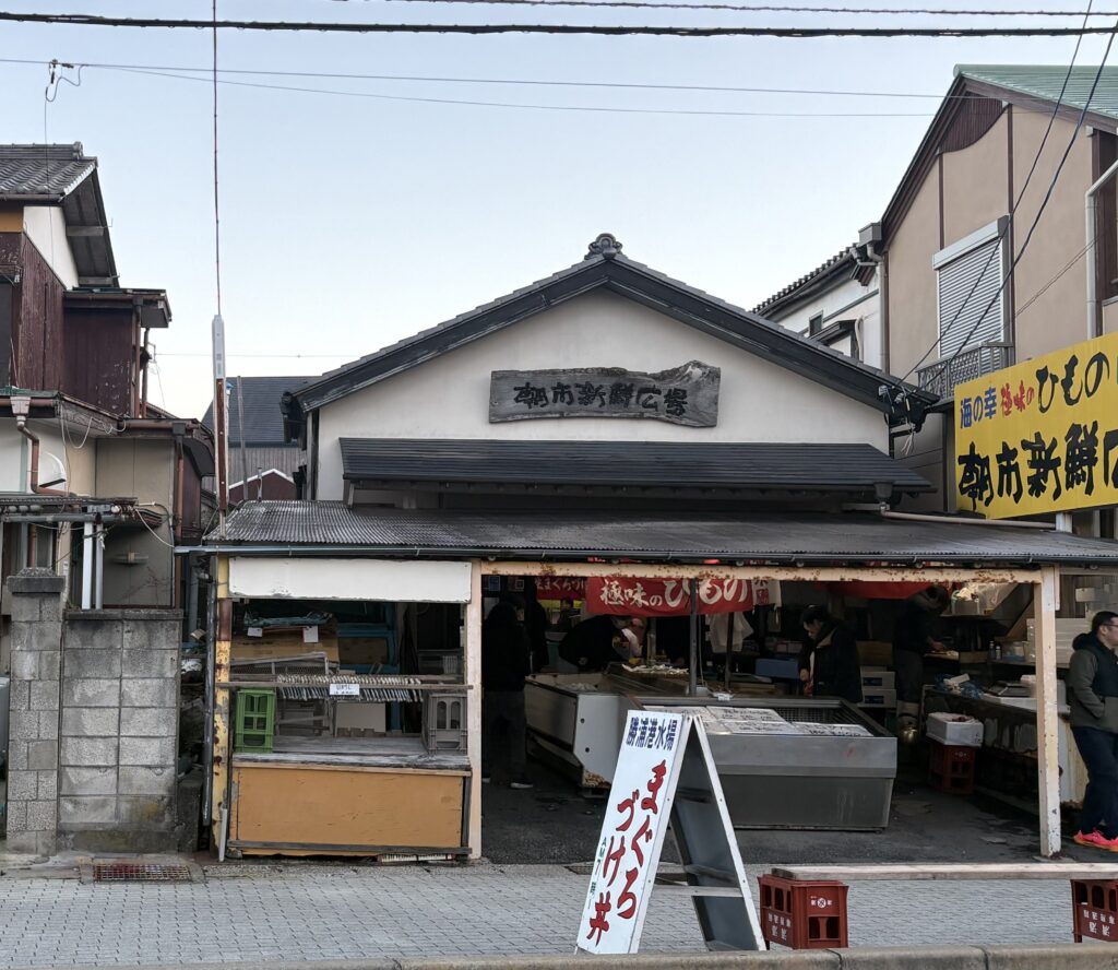 朝市の後にホテルの朝食ブッフェが待っているため今回は断念しましたが、新鮮な魚を楽しめるお店もいくつかありました。そのうちの1つが朝市新鮮広場うおすい。店先では干物など魚介類のお土産などが販売されているのですが、お店の奥を覗くと食事ができるスペースがありました。海鮮丼をリーズナブルにいただけるお店で、午前7時過ぎにもかかわらず賑わっていました。朝市でしっかり朝食をとりたい方におすすめです。