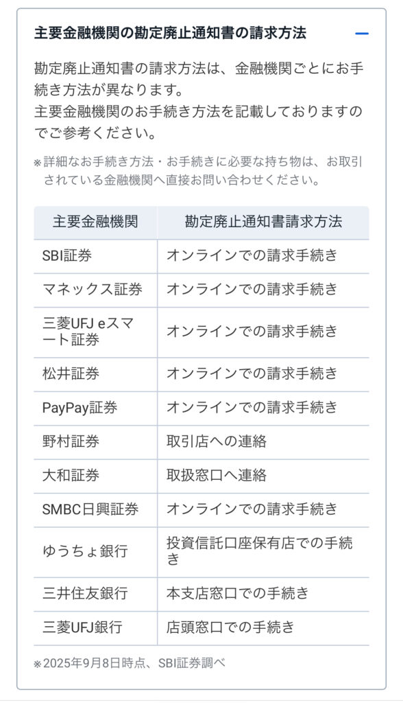 変更前の金融期間に「他社でにNISA口座を開設したい」と申し出ると、勘定廃止通知書または非課税口座廃止通知書のどちらかが発行されます。