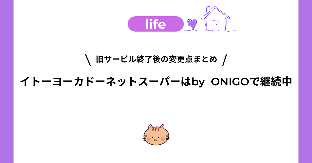 イトーヨーカドーのネットスーパーは形を変えて続いています。旧サービスから配送料は上がりましたが、1時間単位の時間指定や鬼速配達など、使いやすくなった面もあります。以前から利用していた方は、by ONIGOへの切り替えを検討してみてください。
