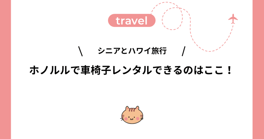 こんにちは!shippoです。 今回ハワイを旅するにあたって、たくさん歩く自信がないと言っているシニアの母。 歩くことはできるのですが、歩く速度が遅く長時間は歩けないのでみんなに迷惑をかけるのではと心配する母のために、車椅子をレンタルするしよう... -