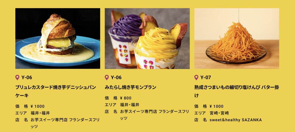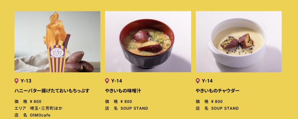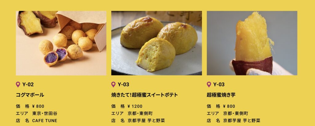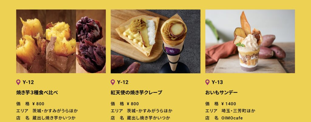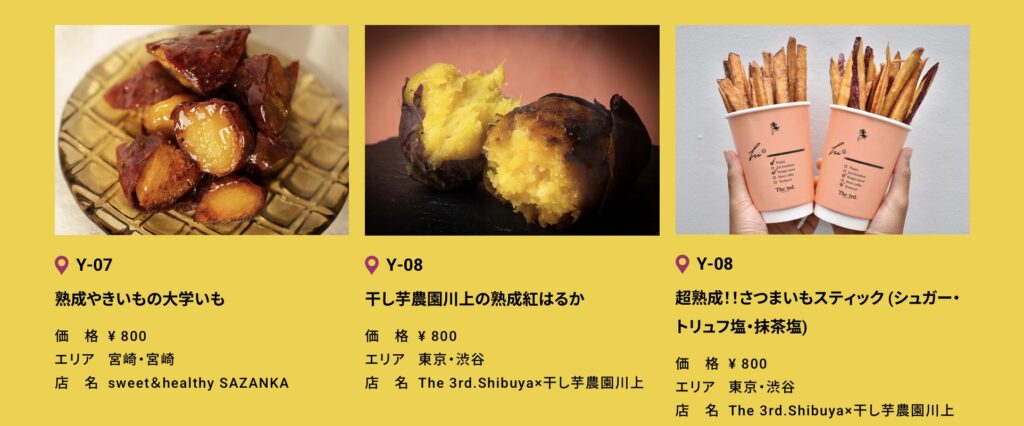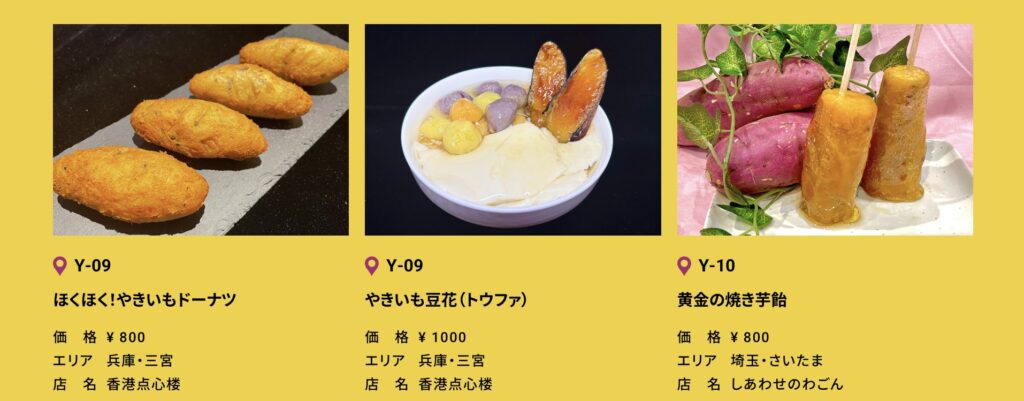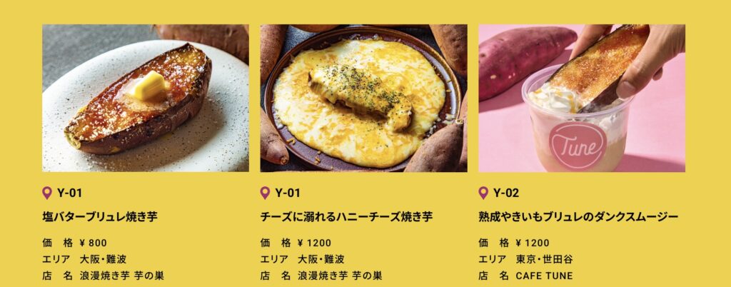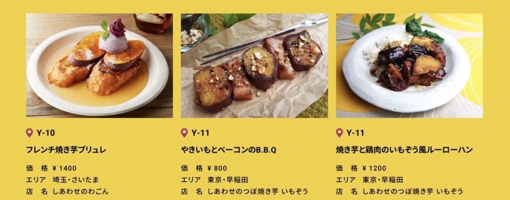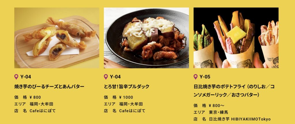 やきいもフェスアプリからまたはやきいもHP経由のKKdayのサイトで購入することができます。メニューか価格は、800円、1,000円、1,200円、1,400円となっていました。