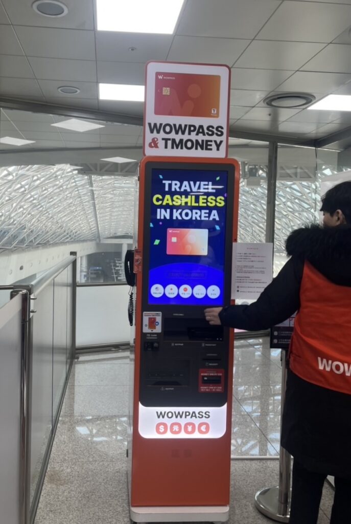 と、ちょっと疑いながら韓国に向かった私です。仁川空港に到着後ドキドキしながらWOWPASS端末の列に並びます。私が利用したのは、空港鉄道A‘REX改札内の端末(現在は閉鎖)です。写真写っているWOWPASSのお兄さんが、日本円でチャージできることを教えてくれました。WOWPASSの兄さんはいつもいるわけではないと思うのですが、もしいたらラッキー♪わからないことは教えてくれます。